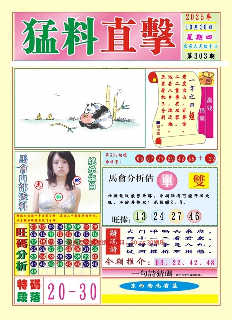 | 302期:天地+二肖〖地肖+兔猴〗开:猴22准 |